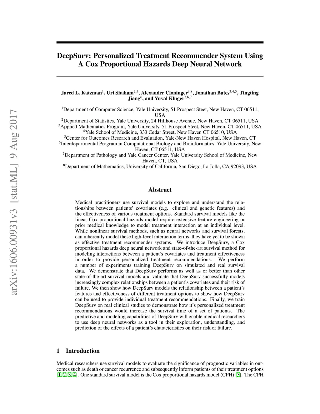 DeepSurv: Personalized Treatment Recommender System Using A Cox