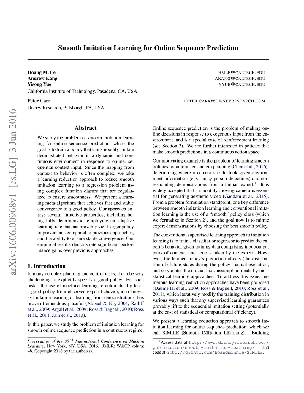 Smooth Imitation Learning for Online Sequence Prediction