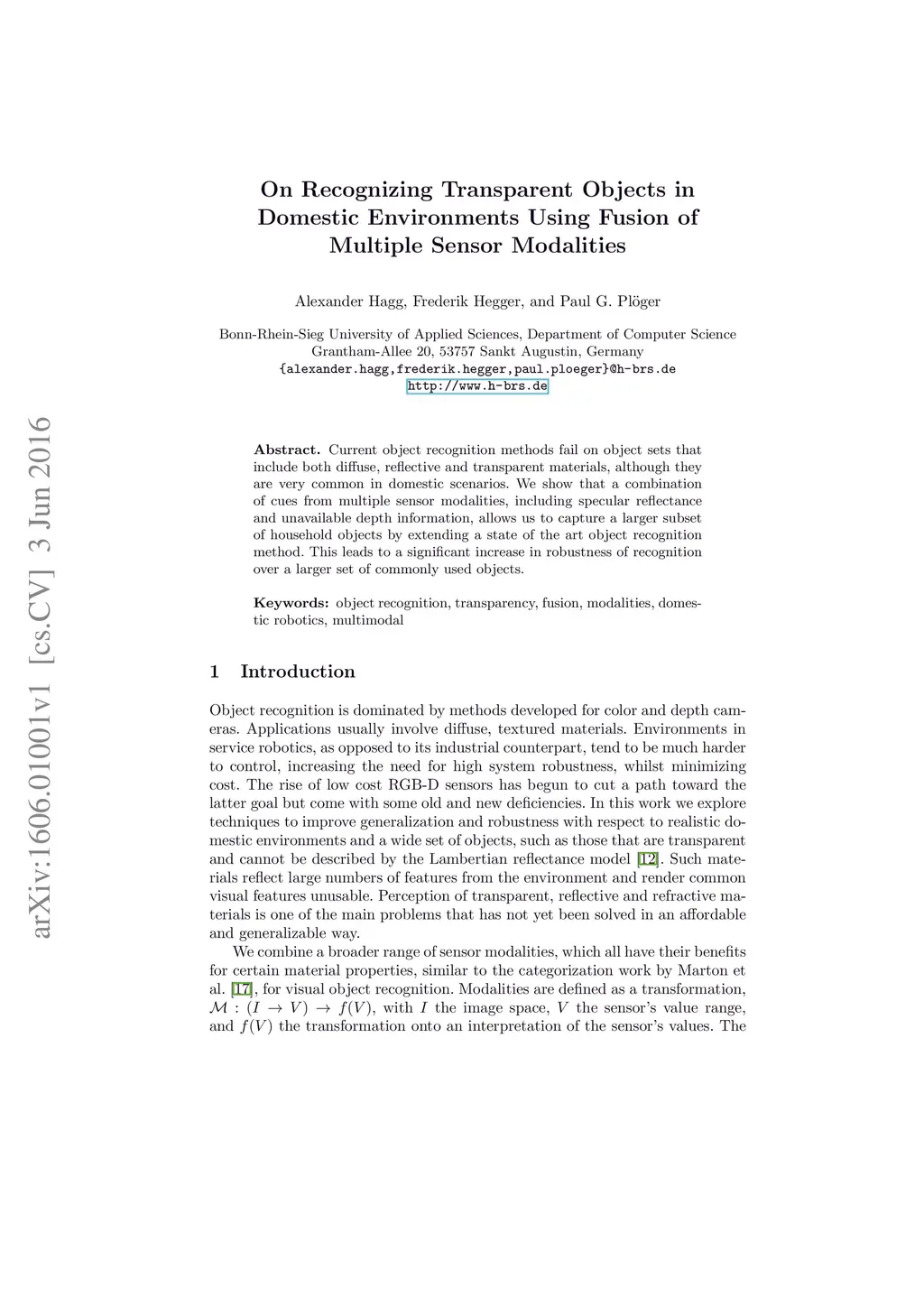 On Recognizing Transparent Objects in Domestic Environments Using Fusion