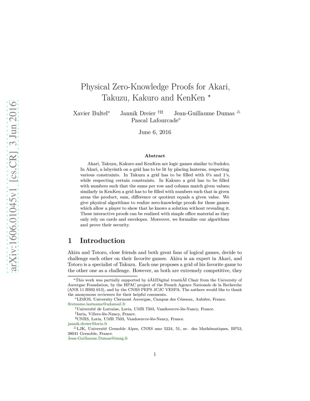 Akari, Takuzu, Kakuro and KenKen are logic games similar to Sudoku. In Akari, a labyrinth on a grid has to be lit by placing lanterns, respecting various constraints. In Takuzu a grid has to be filled with 0's and 1's, while respecting certain constraints. In Kakuro a grid has to be filled with numbers such that the sums per row and column match given values; similarly in KenKen a grid has to be filled with numbers such that in given areas the product, sum, difference or quotient equals a given value. We give physical algorithms to realize zero-knowledge proofs for these games which allow a player to show that he knows a solution without revealing it. These interactive proofs can be realized with simple office material as they only rely on cards and envelopes. Moreover, we formalize our algorithms and prove their security.
