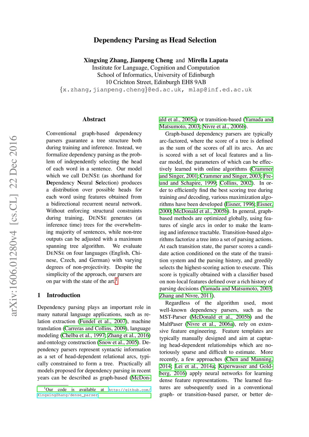 Dependency Parsing as Head Selection