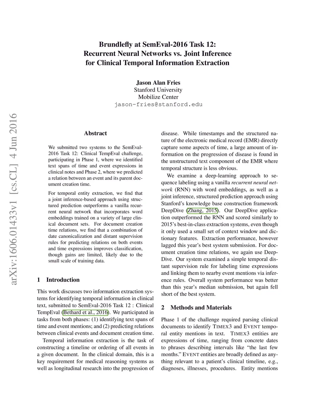 Brundlefly at SemEval-2016 Task 12: Recurrent Neural Networks vs. Joint