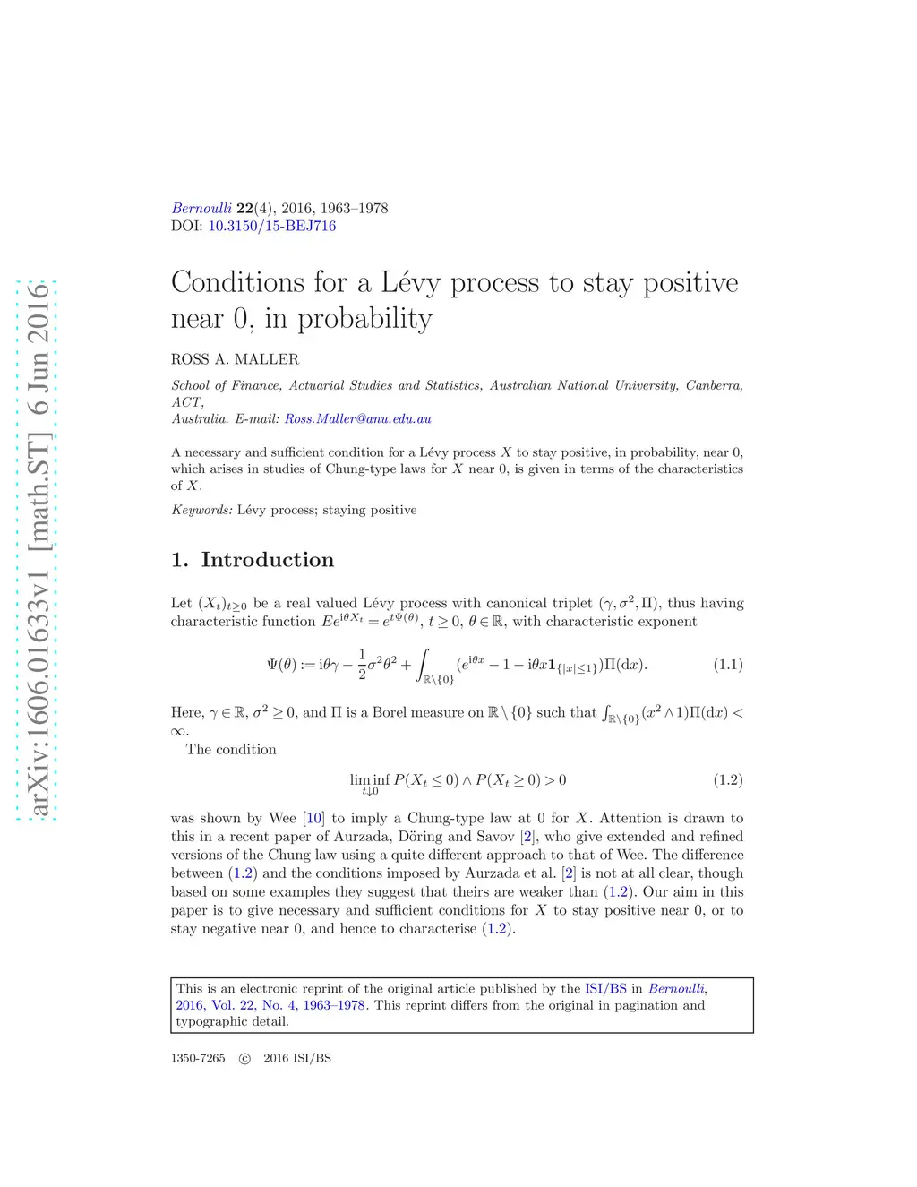 A necessary and sufficient condition for a L\évy process to stay positive, in probability, near 0, which arises in studies of Chung-type laws for near 0, is given in terms of the characteristics of .