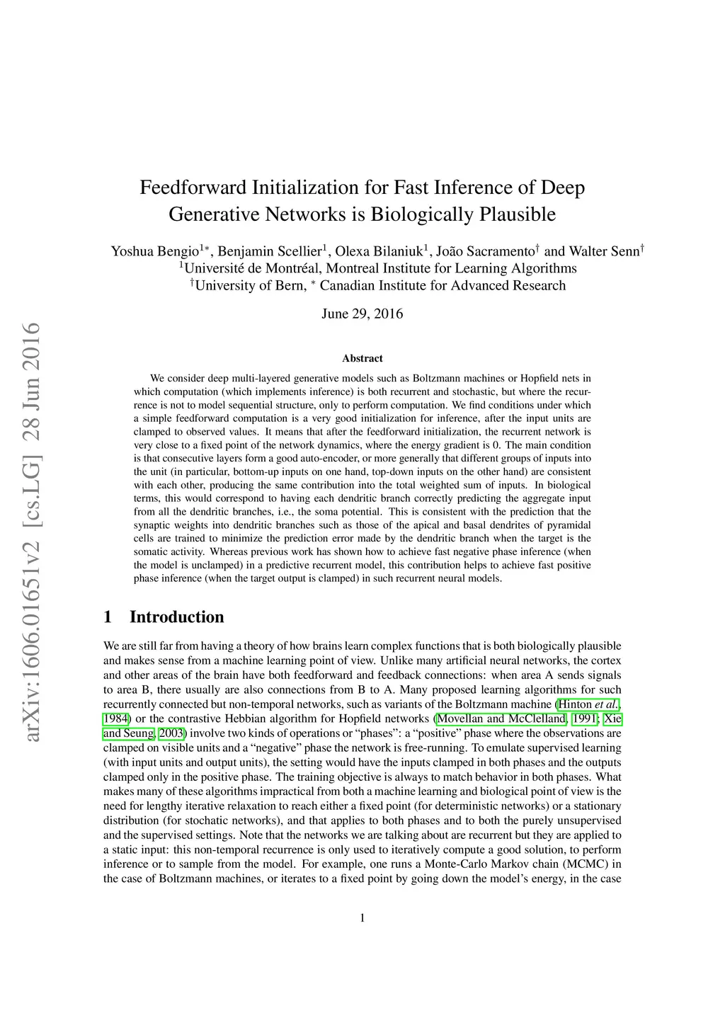 We consider deep multi-layered generative models such as Boltzmann machines or Hopfield nets in which computation (which implements inference) is both recurrent and stochastic, but where the recurrence is not to model sequential structure, only to perform computation. We find conditions under which a simple feedforward computation is a very good initialization for inference, after the input units are clamped to observed values. It means that after the feedforward initialization, the recurrent network is very close to a fixed point of the network dynamics, where the energy gradient is 0. The main condition is that consecutive layers form a good auto-encoder, or more generally that different groups of inputs into the unit (in particular, bottom-up inputs on one hand, top-down inputs on the other hand) are consistent with each other, producing the same contribution into the total weighted sum of inputs. In biological terms, this would correspond to having each dendritic branch correctly predicting the aggregate input from all the dendritic branches, i.e., the soma potential. This is consistent with the prediction that the synaptic weights into dendritic branches such as those of the apical and basal dendrites of pyramidal cells are trained to minimize the prediction error made by the dendritic branch when the target is the somatic activity. Whereas previous work has shown how to achieve fast negative phase inference (when the model is unclamped) in a predictive recurrent model, this contribution helps to achieve fast positive phase inference (when the target output is clamped) in such recurrent neural models.