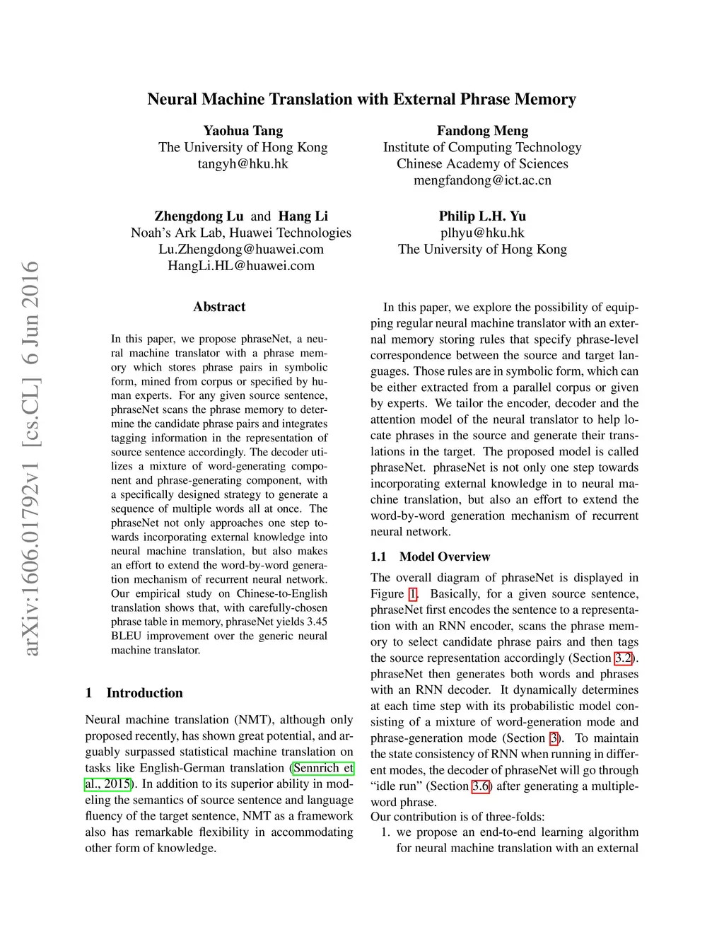 Neural Machine Translation with External Phrase Memory