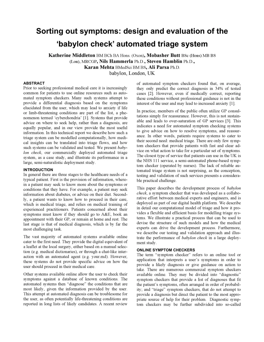 Sorting out symptoms: design and evaluation of the 'babylon check'