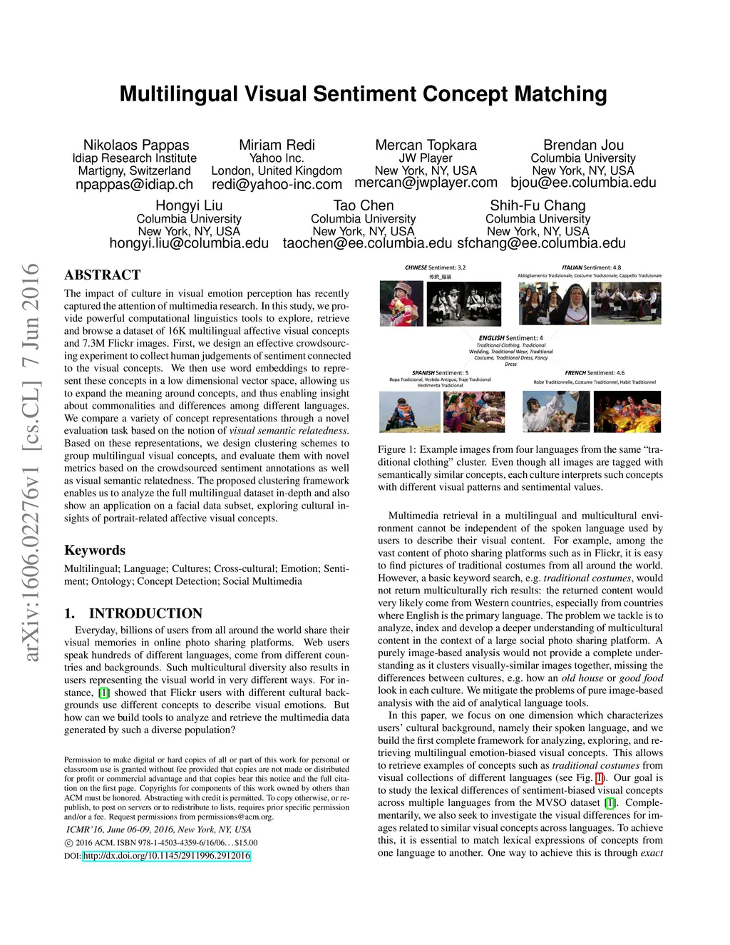 The impact of culture in visual emotion perception has recently captured the attention of multimedia research. In this study, we pro- vide powerful computational linguistics tools to explore, retrieve and browse a dataset of 16K multilingual affective visual concepts and 7.3M Flickr images. First, we design an effective crowdsourc- ing experiment to collect human judgements of sentiment connected to the visual concepts. We then use word embeddings to repre- sent these concepts in a low dimensional vector space, allowing us to expand the meaning around concepts, and thus enabling insight about commonalities and differences among different languages. We compare a variety of concept representations through a novel evaluation task based on the notion of visual semantic relatedness. Based on these representations, we design clustering schemes to group multilingual visual concepts, and evaluate them with novel metrics based on the crowdsourced sentiment annotations as well as visual semantic relatedness. The proposed clustering framework enables us to analyze the full multilingual dataset in-depth and also show an application on a facial data subset, exploring cultural in- sights of portrait-related affective visual concepts.