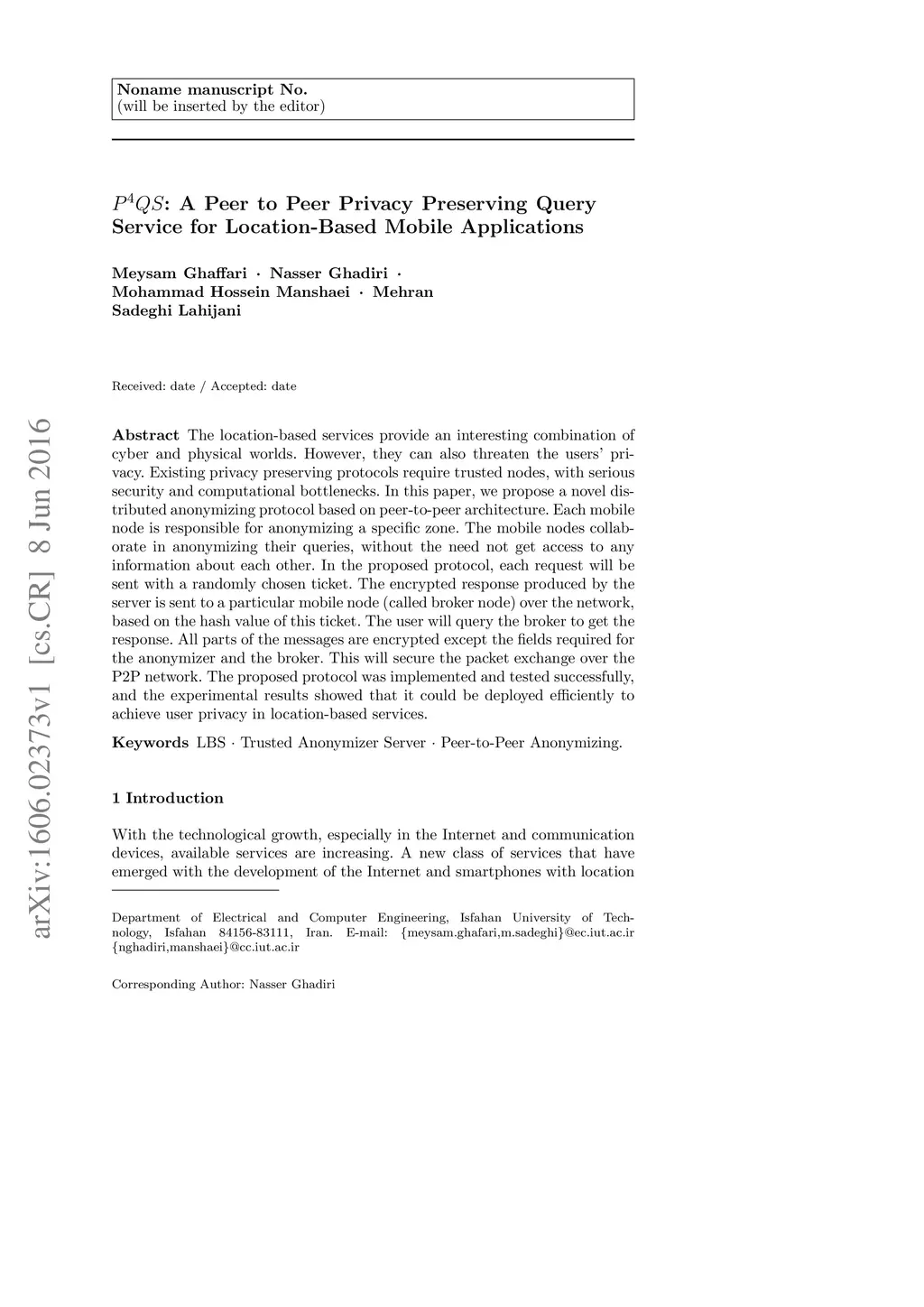 P4QS: A Peer to Peer Privacy Preserving Query Service for Location-Based