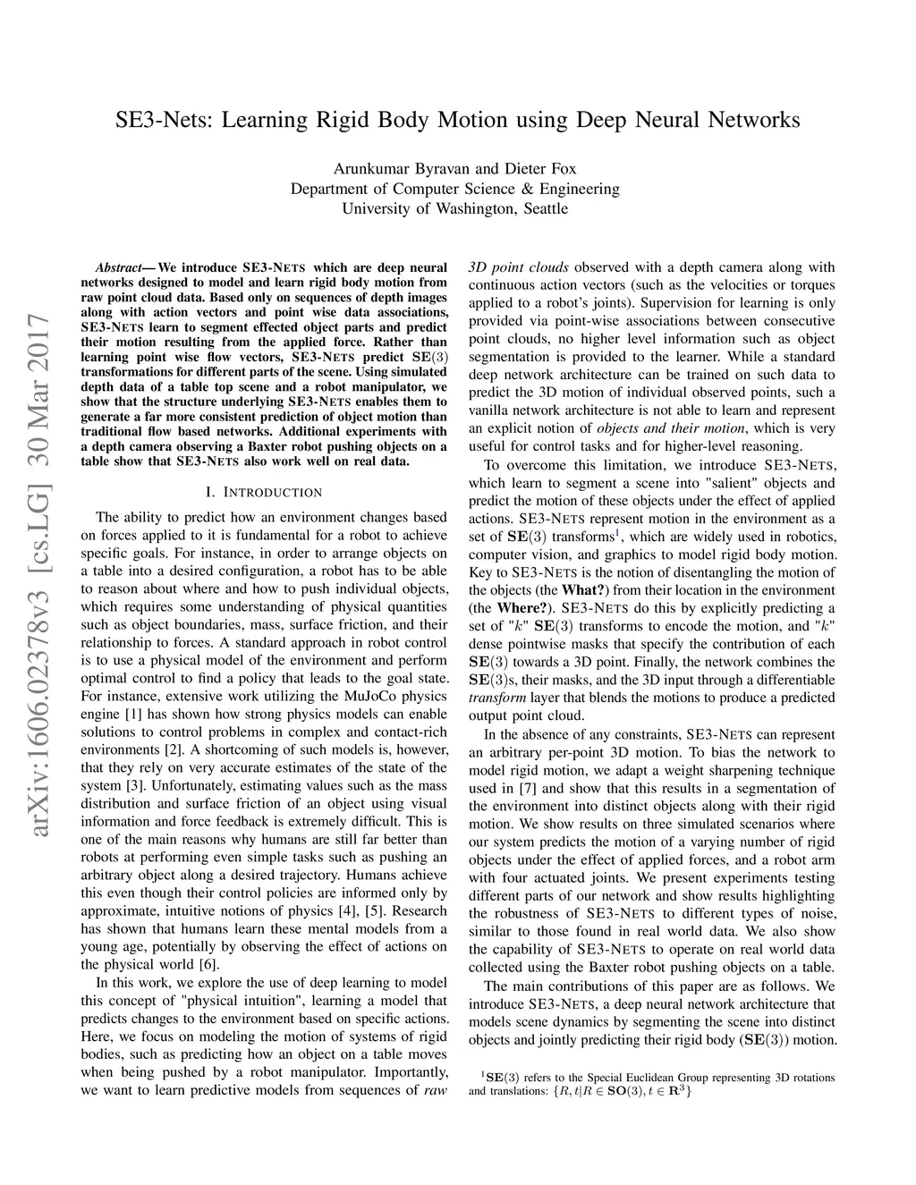 SE3-Nets: Learning Rigid Body Motion using Deep Neural Networks