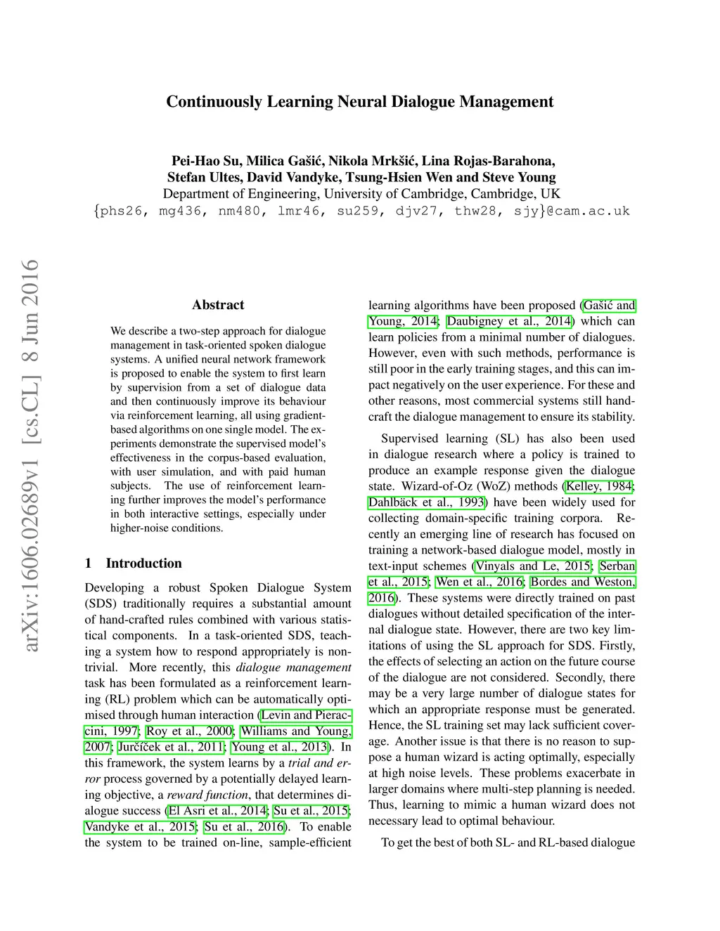 Continuously Learning Neural Dialogue Management