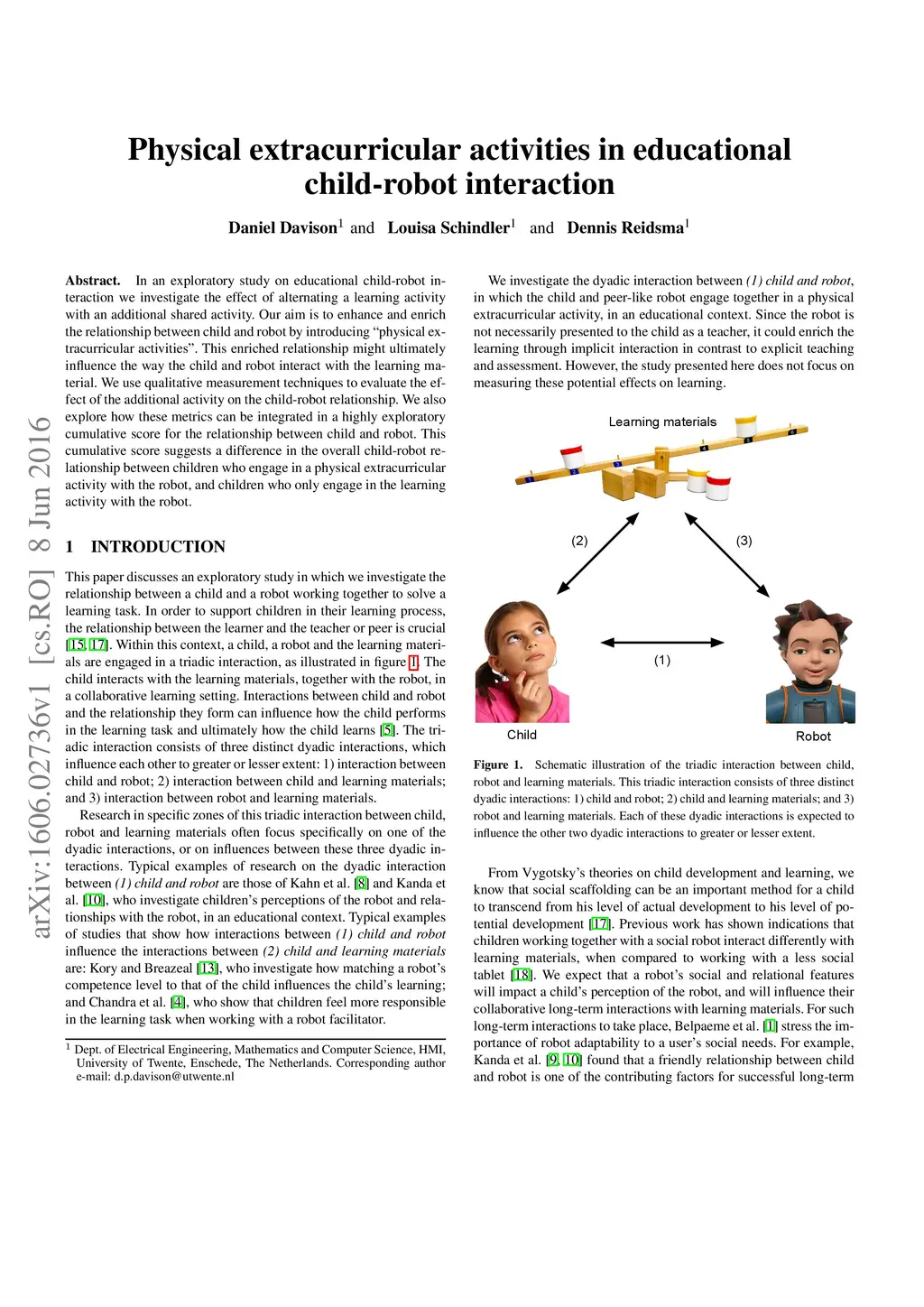 In an exploratory study on educational child-robot interaction we investigate the effect of alternating a learning activity with an additional shared activity. Our aim is to enhance and enrich the relationship between child and robot by introducing "physical extracurricular activities". This enriched relationship might ultimately influence the way the child and robot interact with the learning material. We use qualitative measurement techniques to evaluate the effect of the additional activity on the child-robot relationship. We also explore how these metrics can be integrated in a highly exploratory cumulative score for the relationship between child and robot. This cumulative score suggests a difference in the overall child-robot relationship between children who engage in a physical extracurricular activity with the robot, and children who only engage in the learning activity with the robot.
