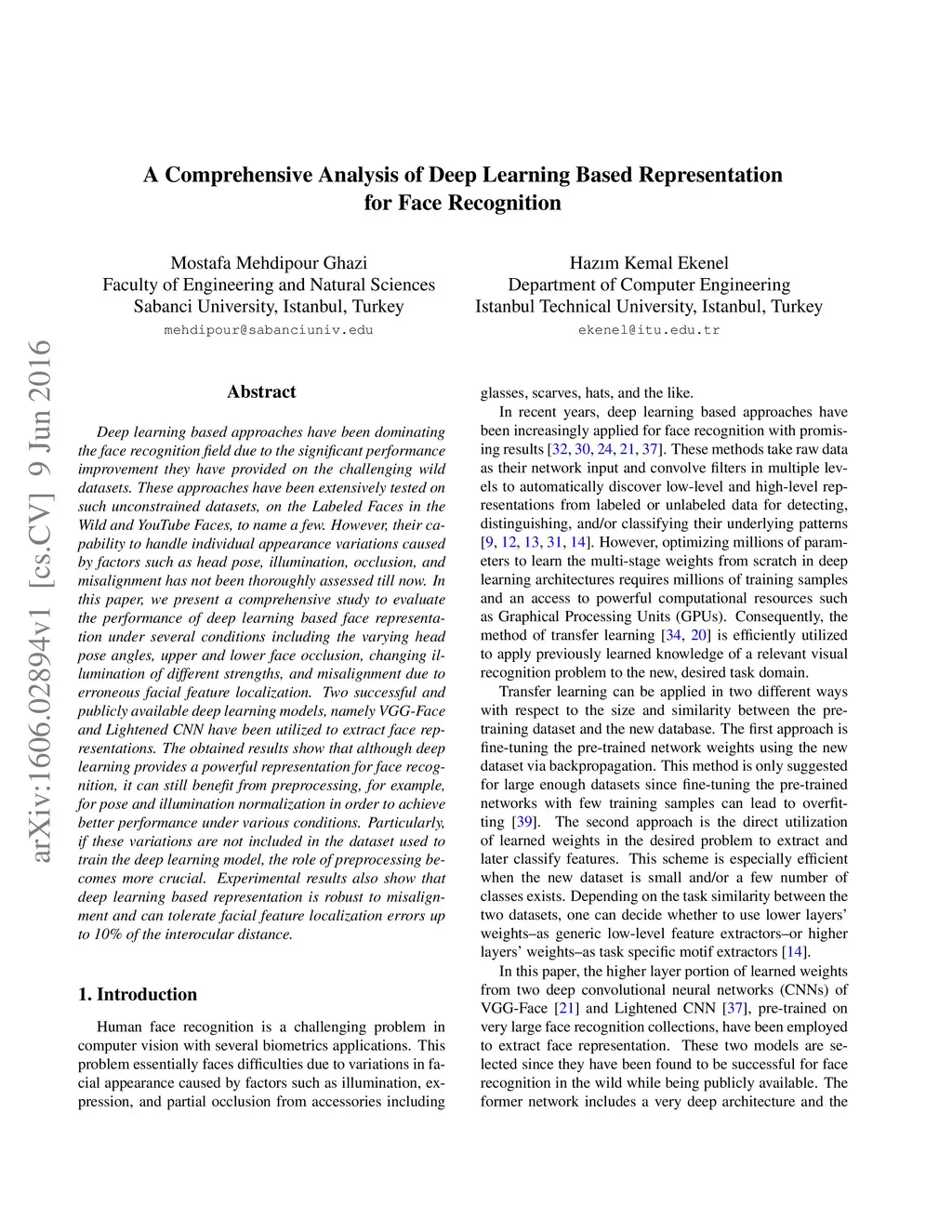 A Comprehensive Analysis of Deep Learning Based Representation for Face