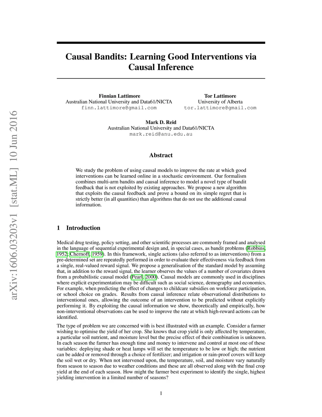 Causal Bandits: Learning Good Interventions via Causal Inference