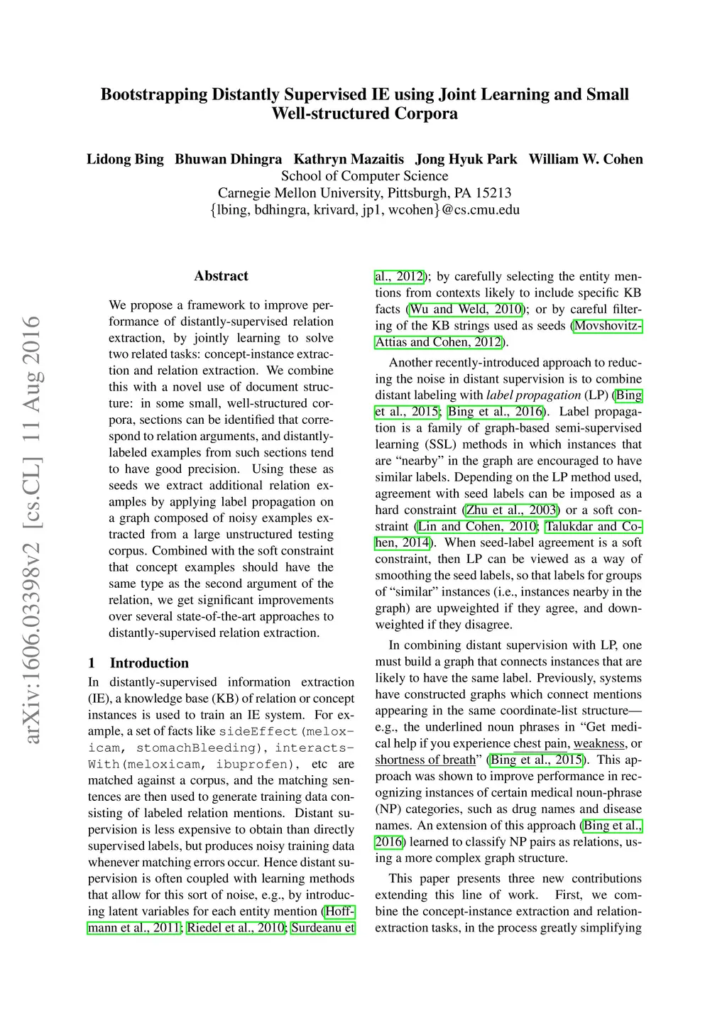 Bootstrapping Distantly Supervised IE using Joint Learning and Small