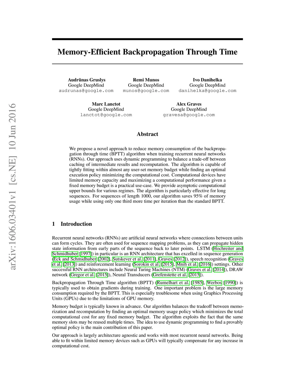 Memory-Efficient Backpropagation Through Time