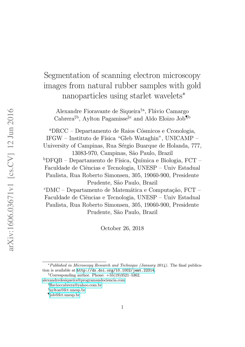 Electronic microscopy has been used for morphology evaluation of different materials structures. However, microscopy results may be affected by several factors. Image processing methods can be used to correct and improve the quality of these results. In this paper we propose an algorithm based on starlets to perform the segmentation of scanning electron microscopy images. An application is presented in order to locate gold nanoparticles in natural rubber membranes. In this application, our method showed accuracy greater than 85% for all test images. Results given by this method will be used in future studies, to computationally estimate the density distribution of gold nanoparticles in natural rubber samples and to predict reduction kinetics of gold nanoparticles at different time periods.