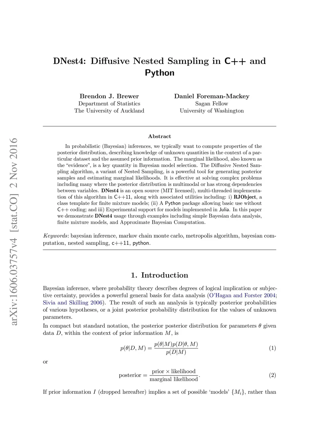 DNest4: Diffusive Nested Sampling in C++ and Python