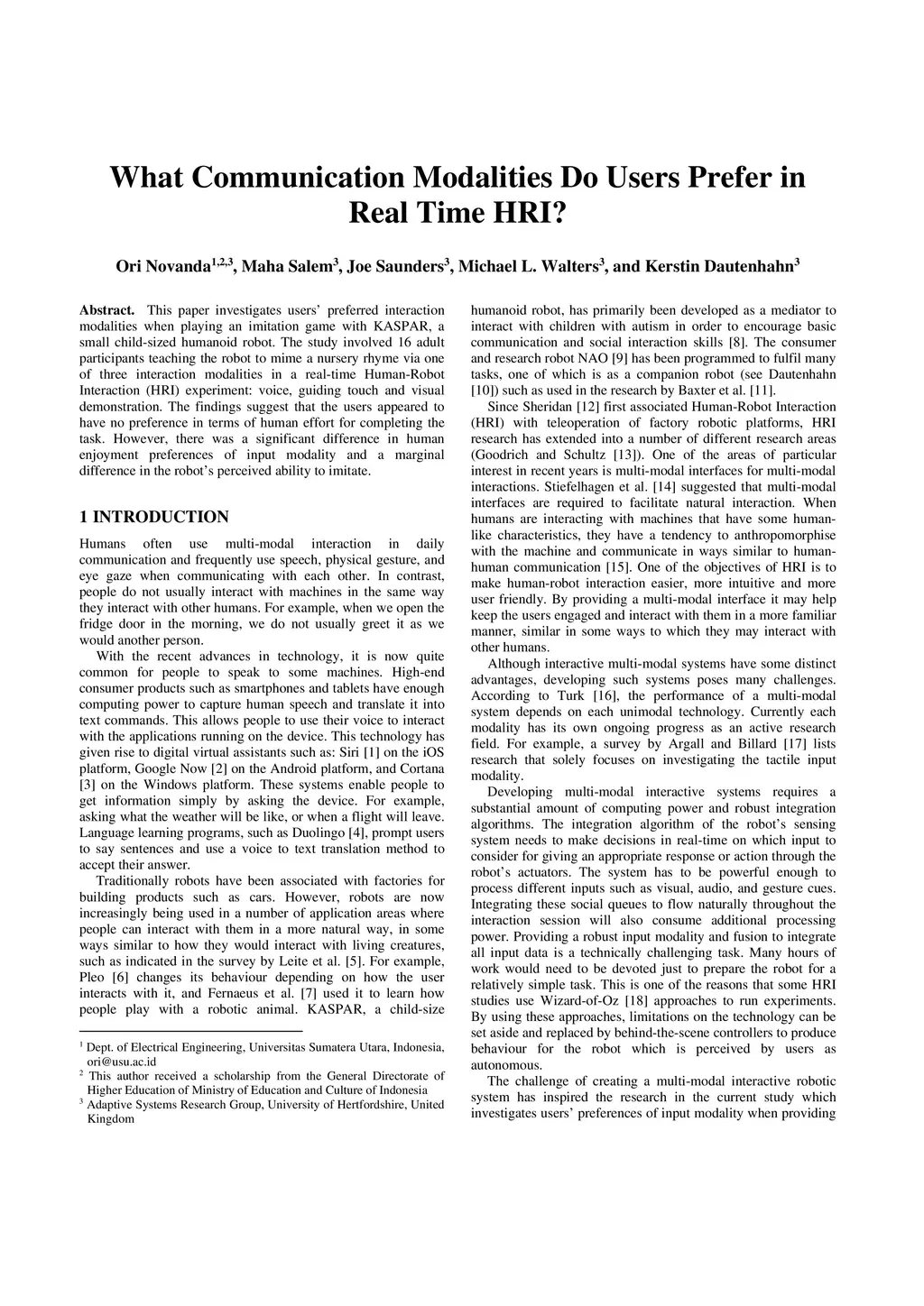 What Communication Modalities Do Users Prefer in Real Time HRI?