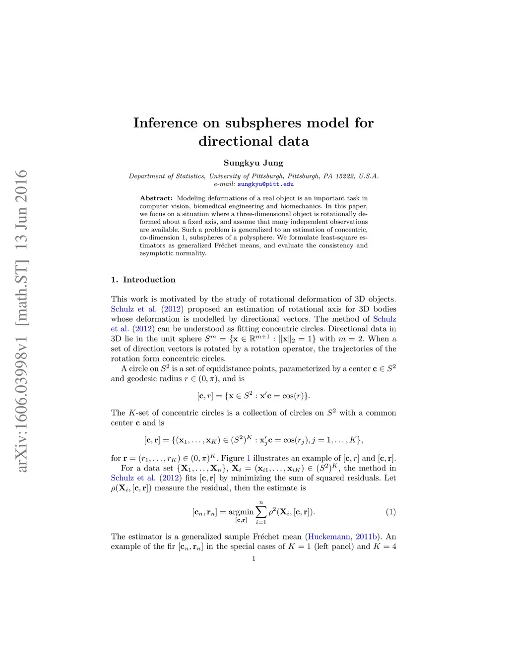 Modeling deformations of a real object is an important task in computer vision, biomedical engineering and biomechanics. In this paper, we focus on a situation where a three-dimensional object is rotationally deformed about a fixed axis, and assume that many independent observations are available. Such a problem is generalized to an estimation of concentric, co-dimension 1, subspheres of a polysphere. We formulate least-square estimators as generalized Fr\'{e}chet means, and evaluate the consistency and asymptotic normality.