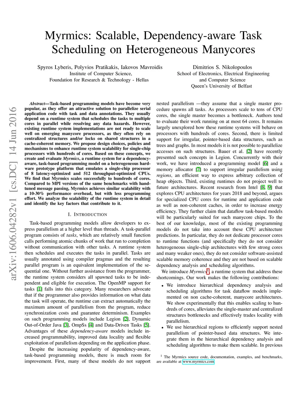 Myrmics: Scalable, Dependency-aware Task Scheduling on Heterogeneous