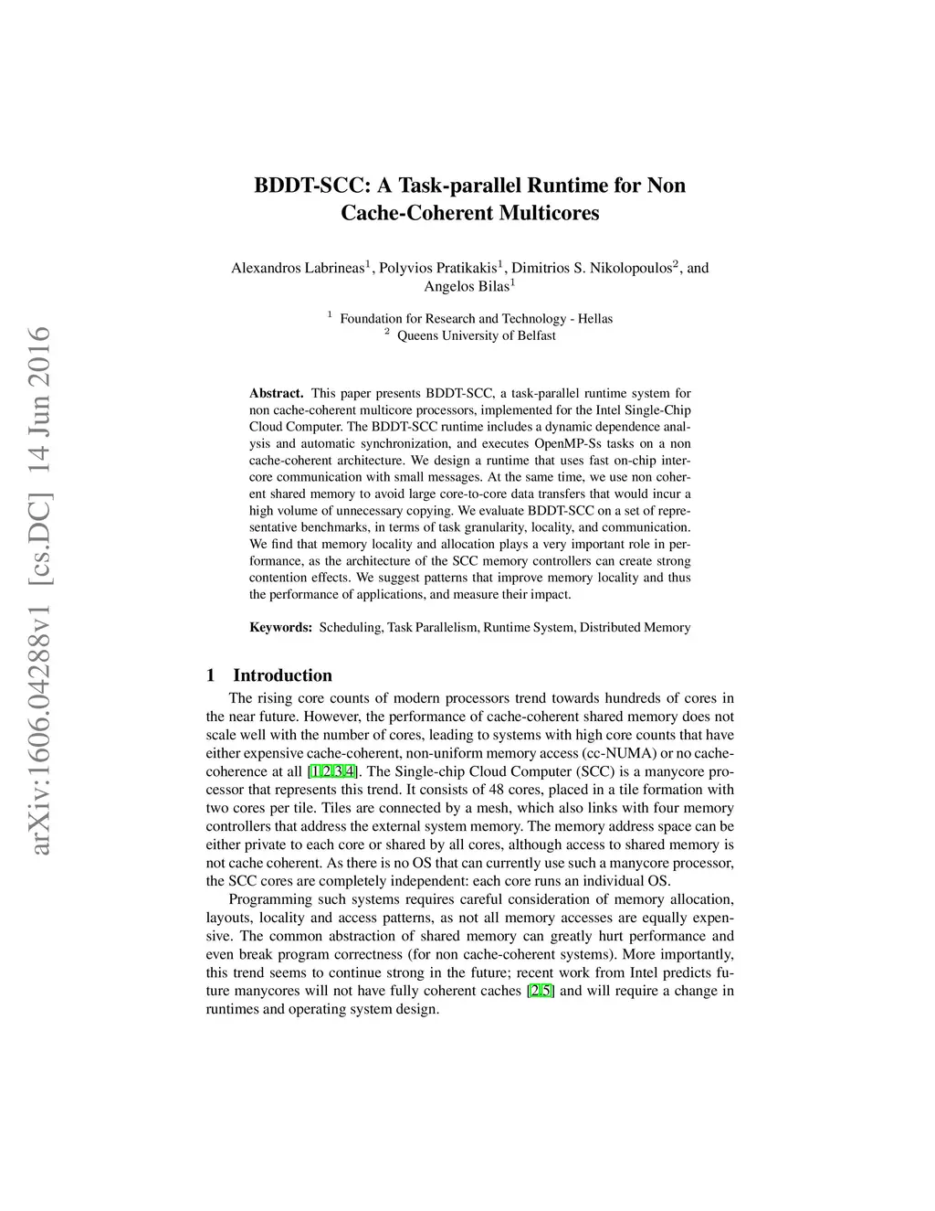 BDDT-SCC: A Task-parallel Runtime for Non Cache-Coherent Multicores