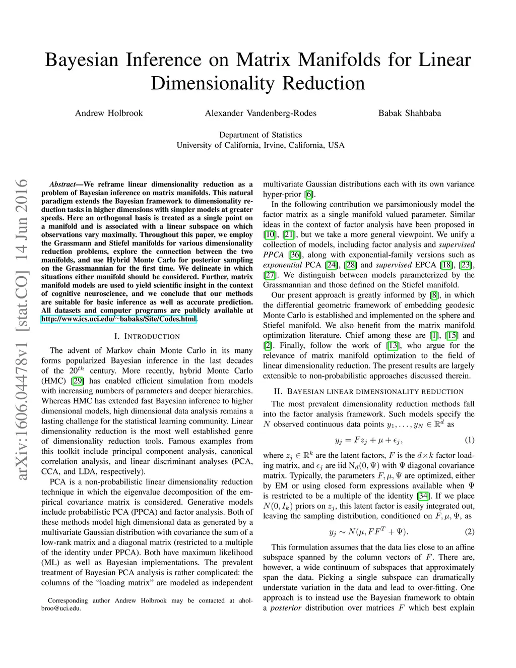 Bayesian Inference on Matrix Manifolds for Linear Dimensionality