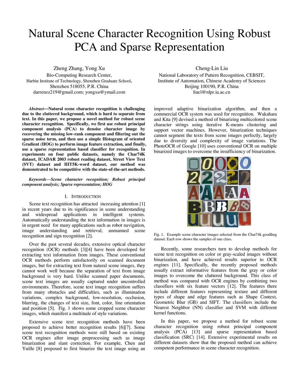 Natural Scene Character Recognition Using Robust PCA and Sparse