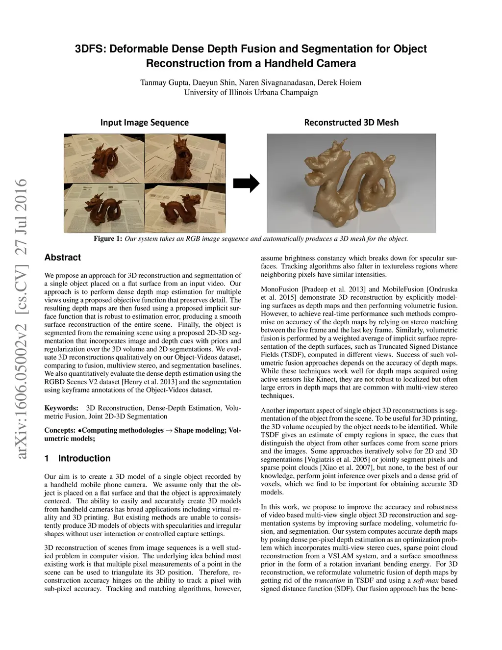 3DFS: Deformable Dense Depth Fusion and Segmentation for Object