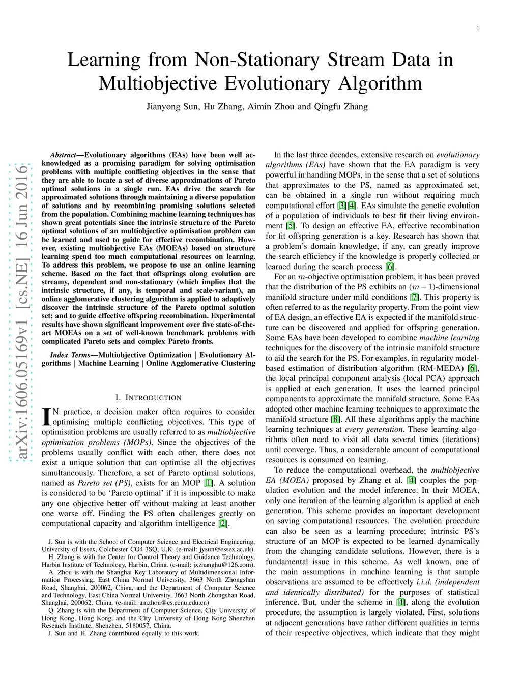 Learning from Non-Stationary Stream Data in Multiobjective Evolutionary