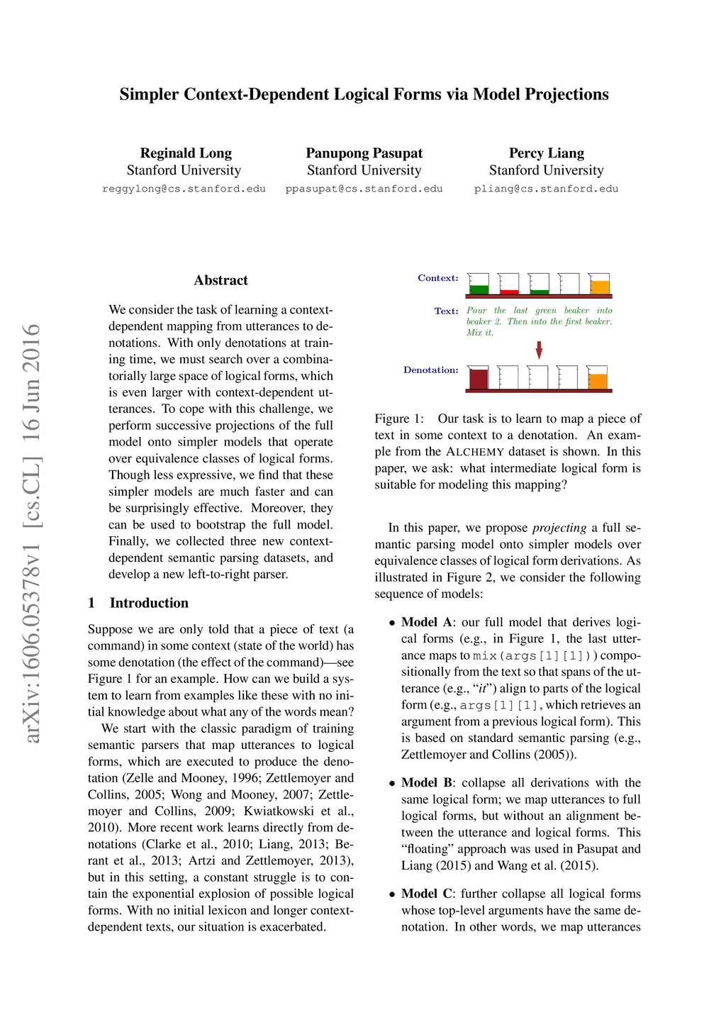 We consider the task of learning a context-dependent mapping from utterances to denotations. With only denotations at training time, we must search over a combinatorially large space of logical forms, which is even larger with context-dependent utterances. To cope with this challenge, we perform successive projections of the full model onto simpler models that operate over equivalence classes of logical forms. Though less expressive, we find that these simpler models are much faster and can be surprisingly effective. Moreover, they can be used to bootstrap the full model. Finally, we collected three new context-dependent semantic parsing datasets, and develop a new left-to-right parser.
