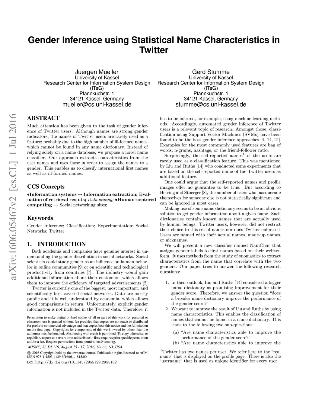 Gender Inference using Statistical Name Characteristics in Twitter