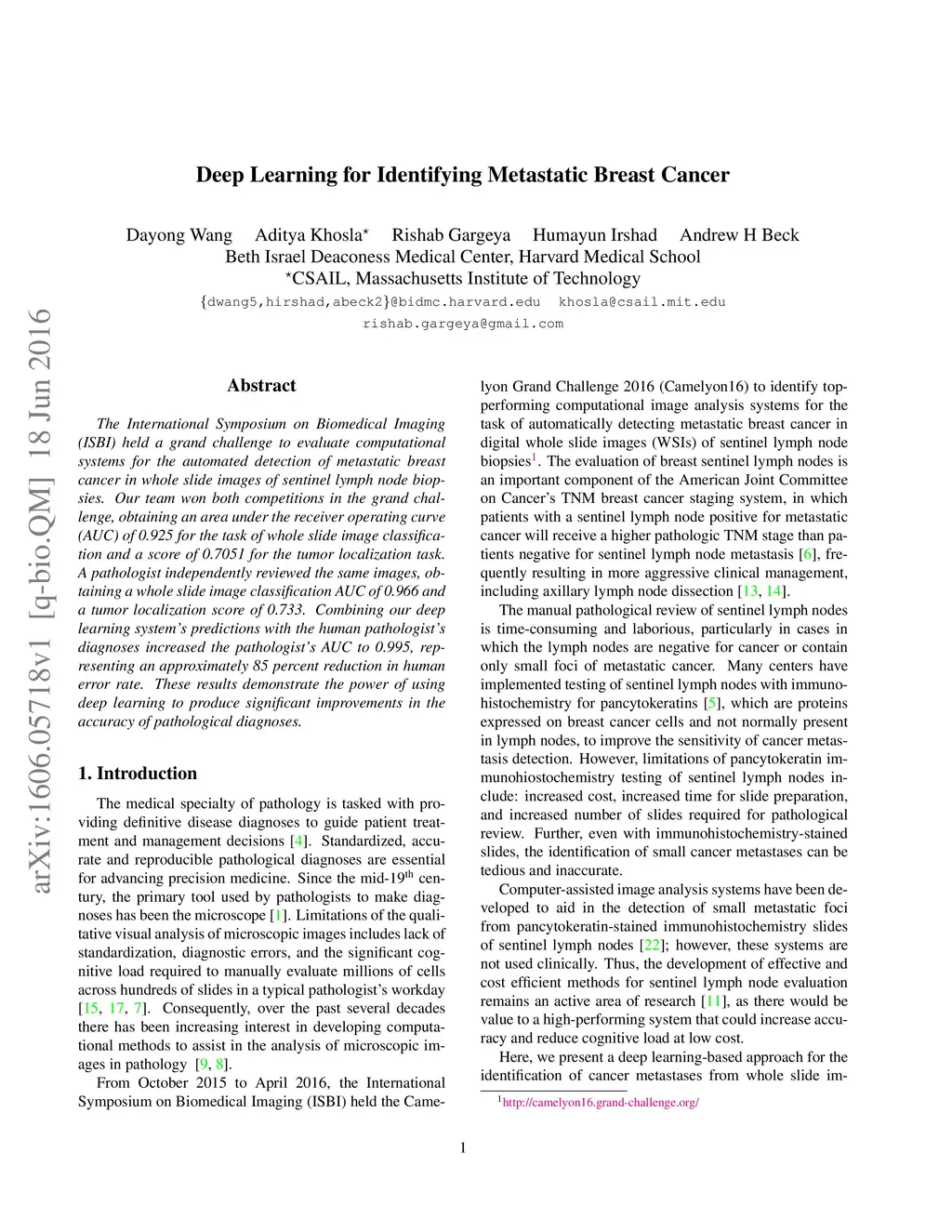Deep Learning for Identifying Metastatic Breast Cancer