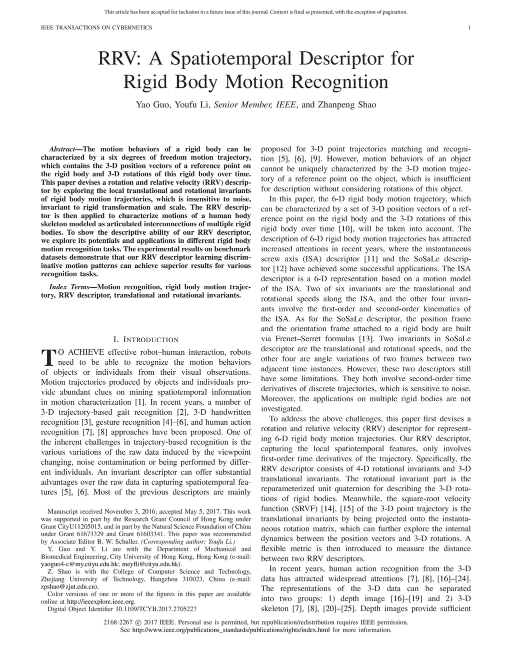 RRV: A Spatiotemporal Descriptor for Rigid Body Motion Recognition