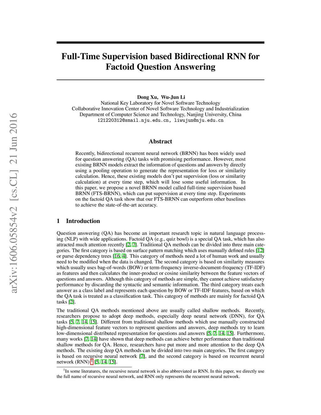 Full-Time Supervision based Bidirectional RNN for Factoid Question