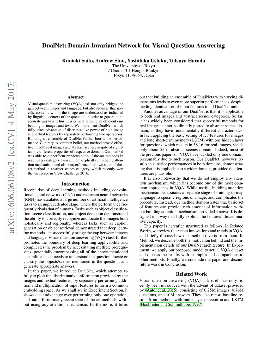 DualNet: Domain-Invariant Network for Visual Question Answering