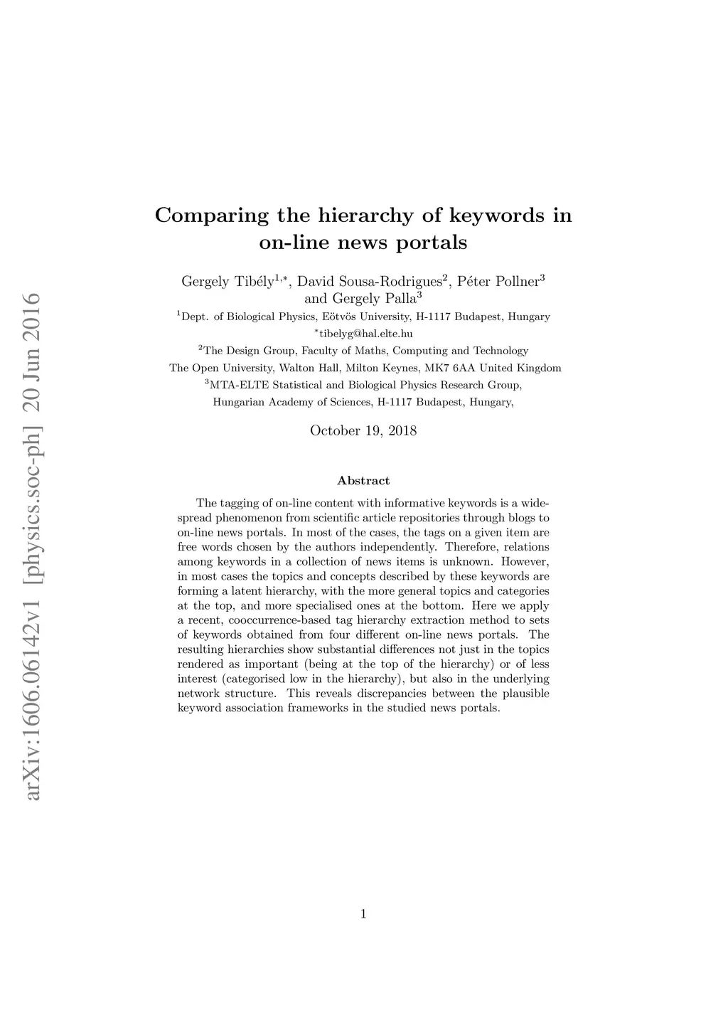 The tagging of on-line content with informative keywords is a widespread phenomenon from scientific article repositories through blogs to on-line news portals. In most of the cases, the tags on a given item are free words chosen by the authors independently. Therefore, relations among keywords in a collection of news items is unknown. However, in most cases the topics and concepts described by these keywords are forming a latent hierarchy, with the more general topics and categories at the top, and more specialised ones at the bottom. Here we apply a recent, cooccurrence-based tag hierarchy extraction method to sets of keywords obtained from four different on-line news portals. The resulting hierarchies show substantial differences not just in the topics rendered as important (being at the top of the hierarchy) or of less interest (categorised low in the hierarchy), but also in the underlying network structure. This reveals discrepancies between the plausible keyword association frameworks in the studied news portals.