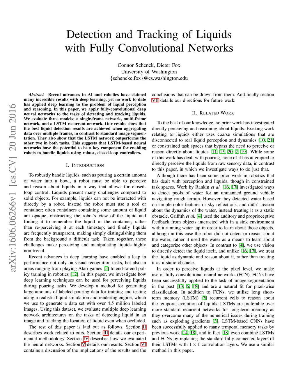 Detection and Tracking of Liquids with Fully Convolutional Networks