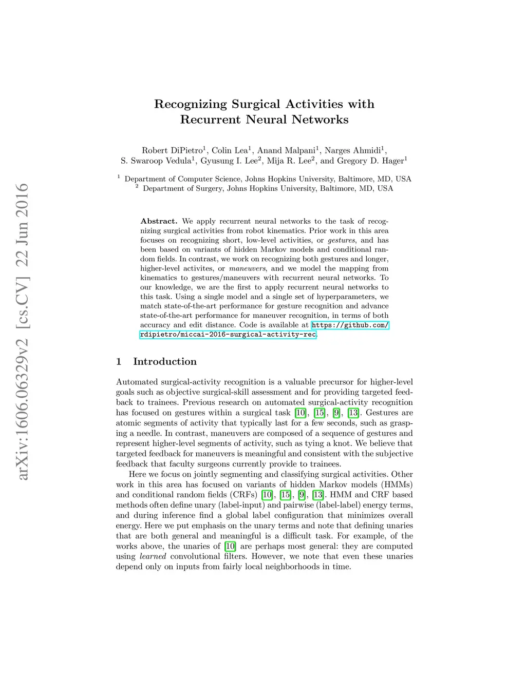 Recognizing Surgical Activities with Recurrent Neural Networks