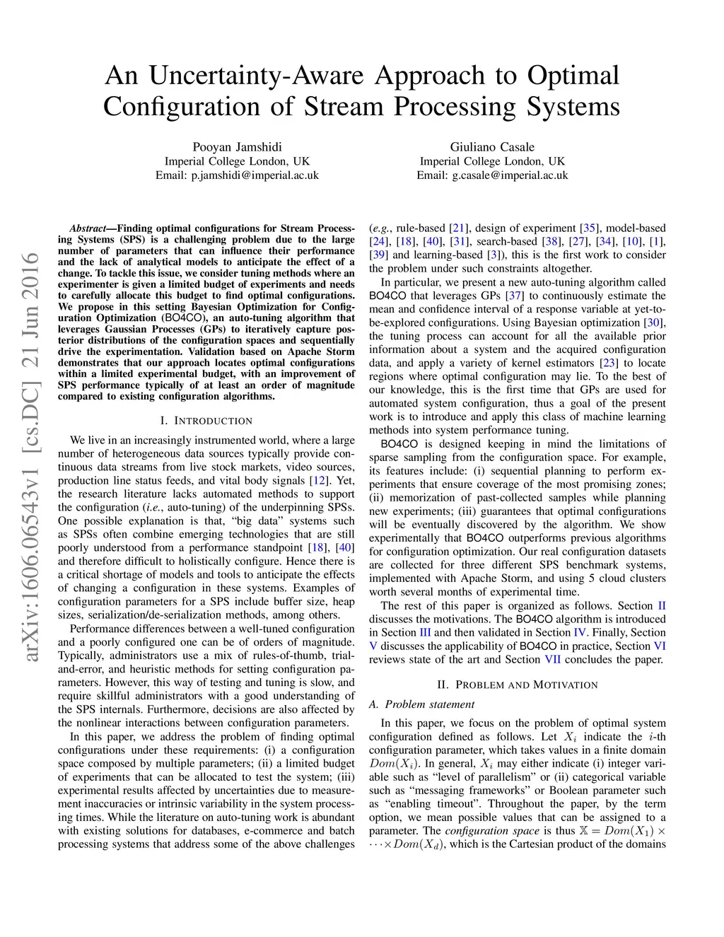 An Uncertainty-Aware Approach to Optimal Configuration of Stream