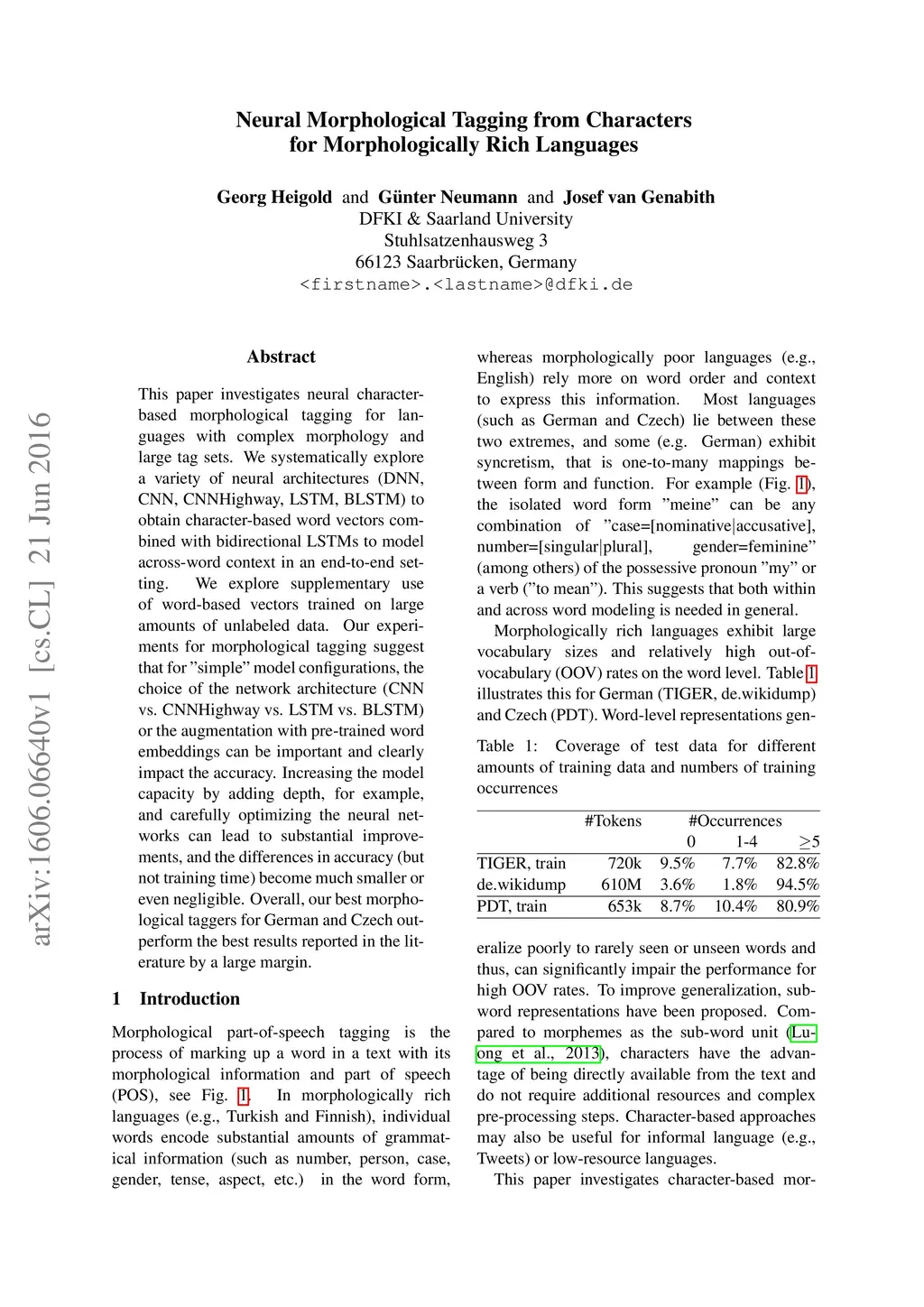Neural Morphological Tagging from Characters for Morphologically Rich