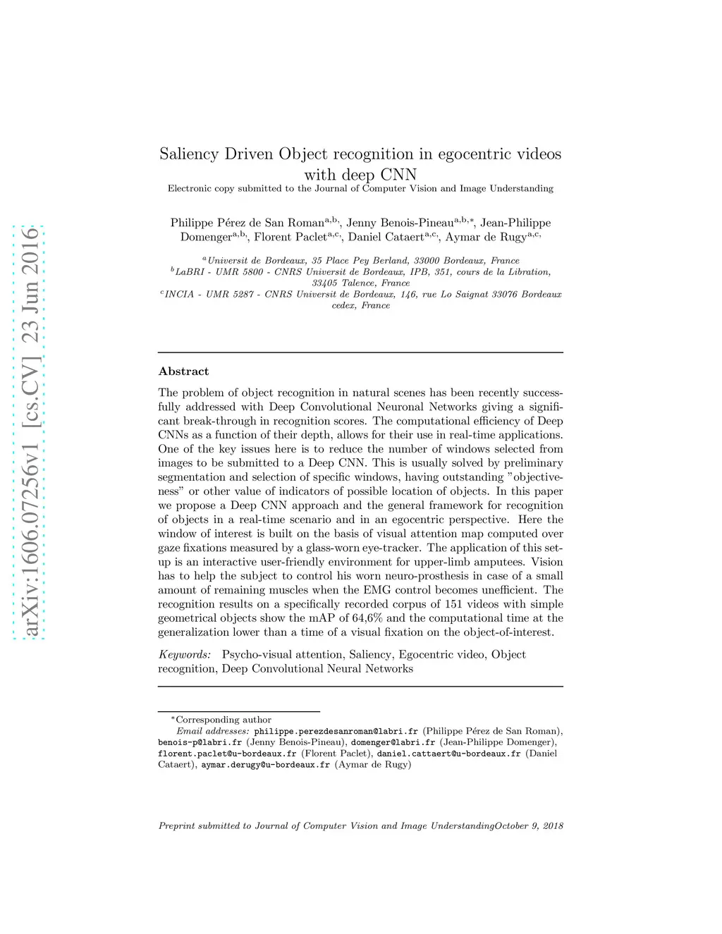 Saliency Driven Object recognition in egocentric videos with deep CNN