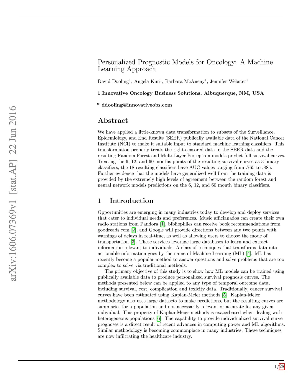 Personalized Prognostic Models for Oncology: A Machine Learning Approach