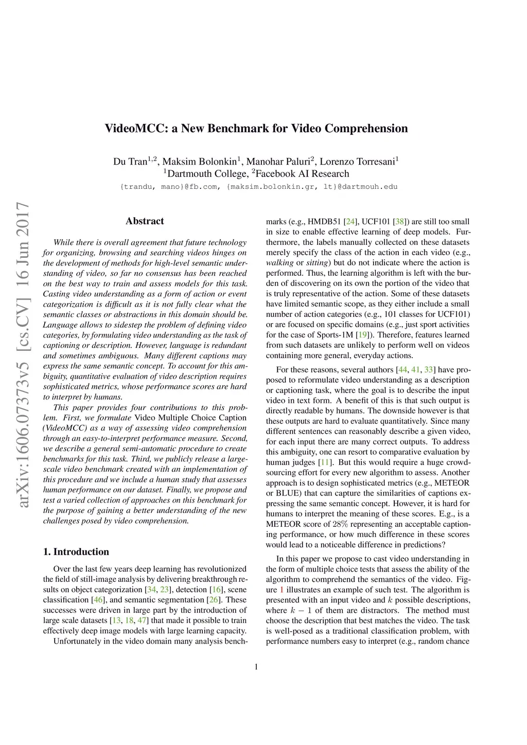 While there is overall agreement that future technology for organizing, browsing and searching videos hinges on the development of methods for high-level semantic understanding of video, so far no consensus has been reached on the best way to train and assess models for this task. Casting video understanding as a form of action or event categorization is problematic as it is not fully clear what the semantic classes or abstractions in this domain should be. Language has been exploited to sidestep the problem of defining video categories, by formulating video understanding as the task of captioning or description. However, language is highly complex, redundant and sometimes ambiguous. Many different captions may express the same semantic concept. To account for this ambiguity, quantitative evaluation of video description requires sophisticated metrics, whose performance scores are typically hard to interpret by humans. This paper provides four contributions to this problem. First, we formulate Video Multiple Choice Caption (VideoMCC) as a new well-defined task with an easy-to-interpret performance measure. Second, we describe a general semi-automatic procedure to create benchmarks for this task. Third, we publicly release a large-scale video benchmark created with an implementation of this procedure and we include a human study that assesses human performance on our dataset. Finally, we propose and test a varied collection of approaches on this benchmark for the purpose of gaining a better understanding of the new challenges posed by video comprehension.