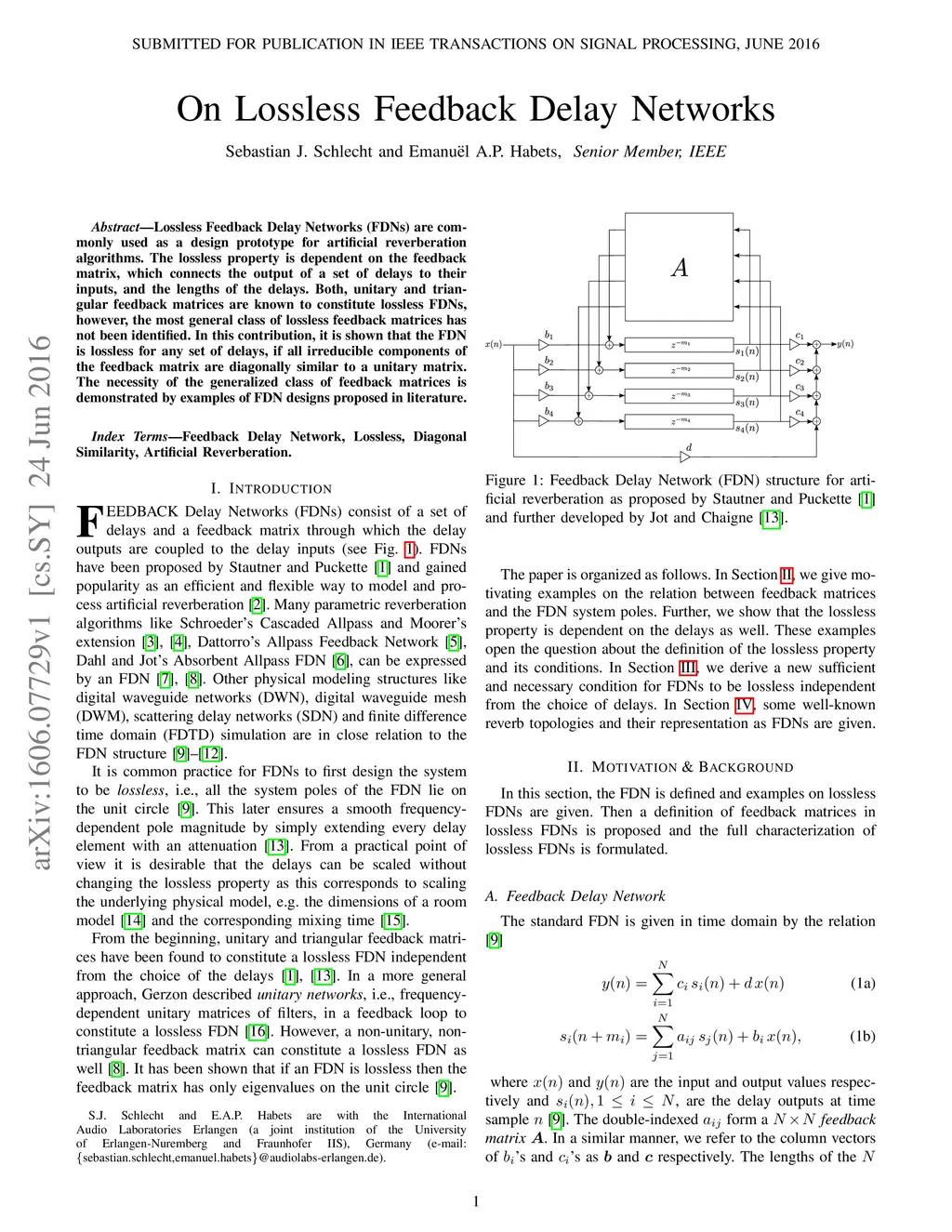 Lossless Feedback Delay Networks (FDNs) are commonly used as a design prototype for artificial reverberation algorithms. The lossless property is dependent on the feedback matrix, which connects the output of a set of delays to their inputs, and the lengths of the delays. Both, unitary and triangular feedback matrices are known to constitute lossless FDNs, however, the most general class of lossless feedback matrices has not been identified. In this contribution, it is shown that the FDN is lossless for any set of delays, if all irreducible components of the feedback matrix are diagonally similar to a unitary matrix. The necessity of the generalized class of feedback matrices is demonstrated by examples of FDN designs proposed in literature.