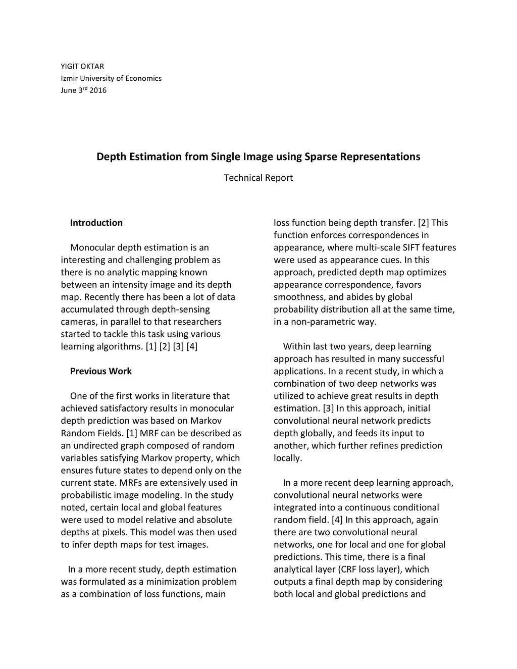 Monocular depth estimation is an interesting and challenging problem as there is no analytic mapping known between an intensity image and its depth map. Recently there has been a lot of data accumulated through depth-sensing cameras, in parallel to that researchers started to tackle this task using various learning algorithms. In this paper, a deep sparse coding method is proposed for monocular depth estimation along with an approach for deterministic dictionary initialization.