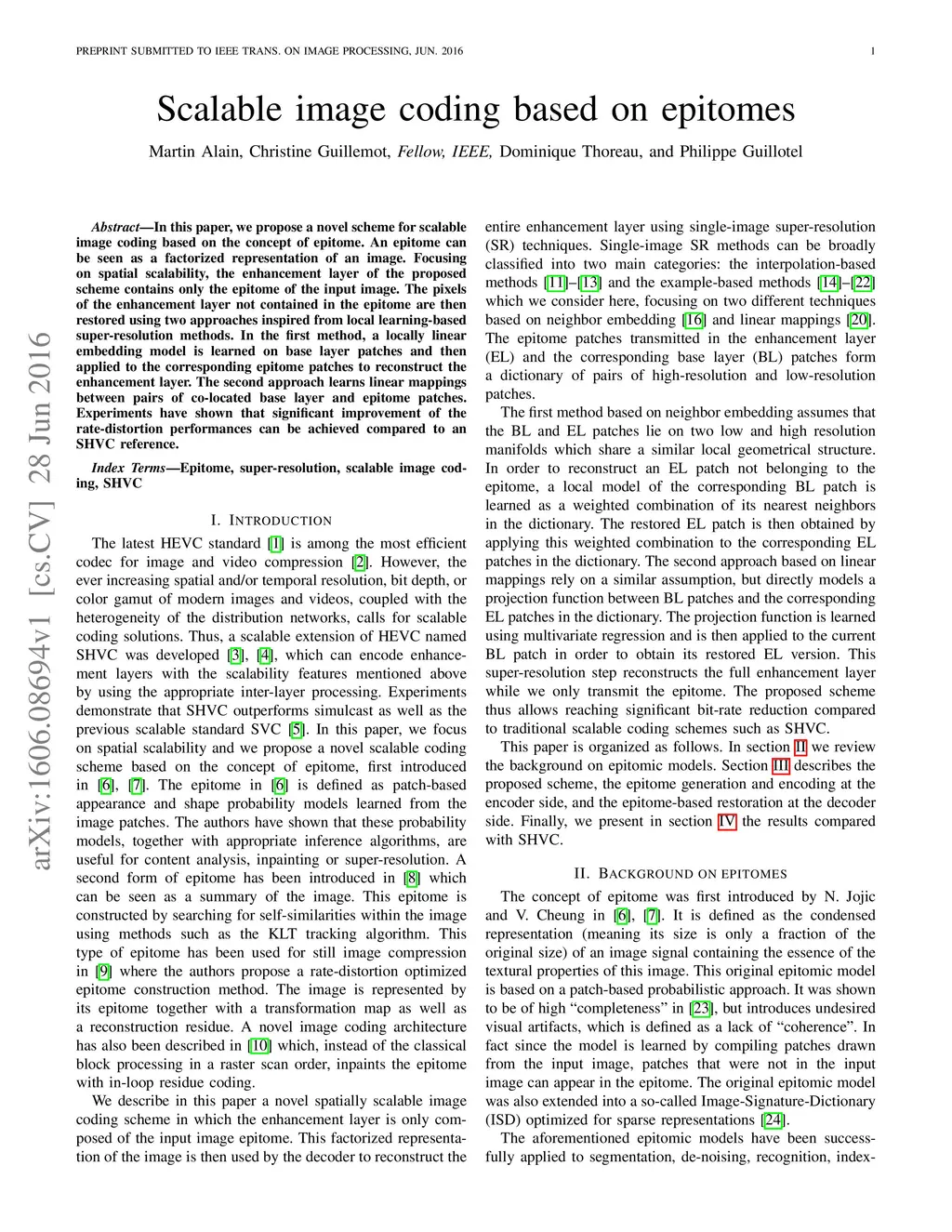 Scalable image coding based on epitomes
