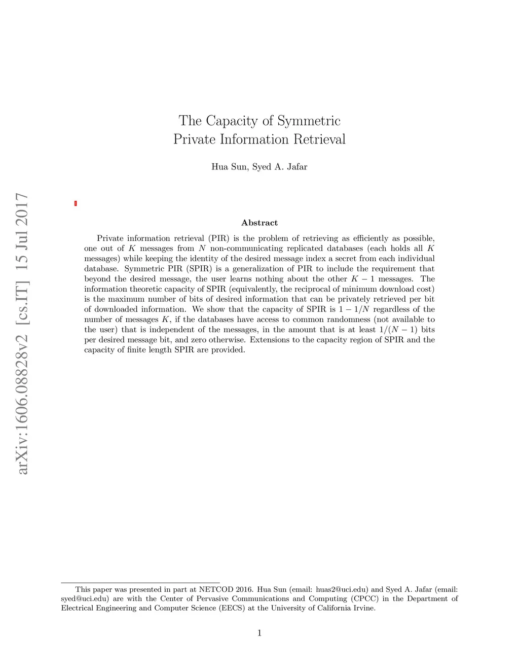 Private information retrieval (PIR) is the problem of retrieving as efficiently as possible, one out of messages from non-communicating replicated databases (each holds all messages) while keeping the identity of the desired message index a secret from each individual database. Symmetric PIR (SPIR) is a generalization of PIR to include the requirement that beyond the desired message, the user learns nothing about the other messages. The information theoretic capacity of SPIR (equivalently, the reciprocal of minimum download cost) is the maximum number of bits of desired information that can be privately retrieved per bit of downloaded information. We show that the capacity of SPIR is regardless of the number of messages , if the databases have access to common randomness (not available to the user) that is independent of the messages, in the amount that is at least bits per desired message bit, and zero otherwise. Extensions to the capacity region of SPIR and the capacity of finite length SPIR are provided.