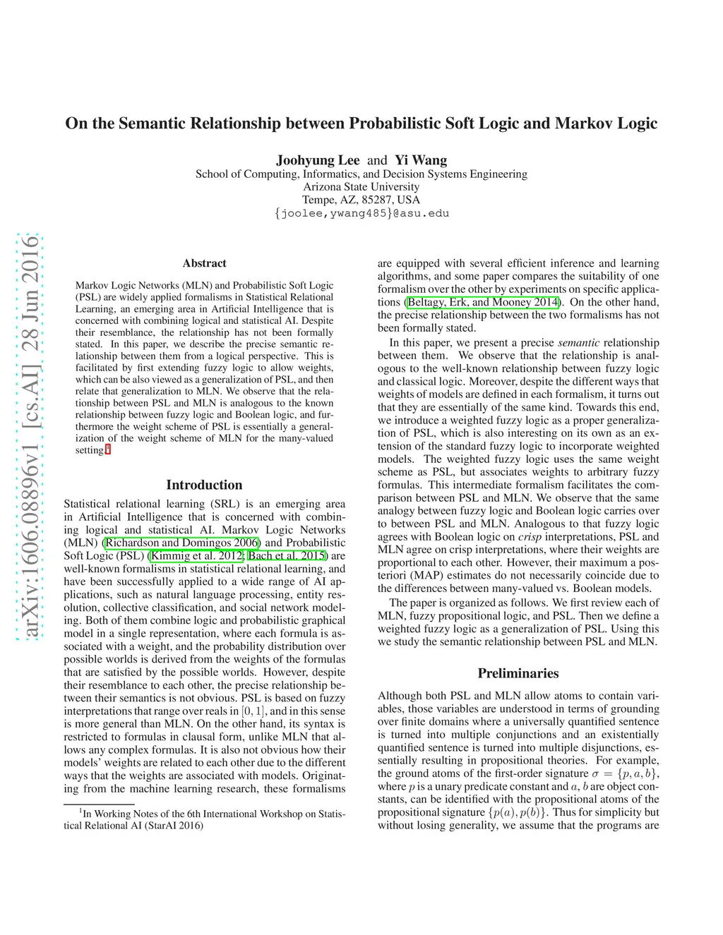 Markov Logic Networks (MLN) and Probabilistic Soft Logic (PSL) are widely applied formalisms in Statistical Relational Learning, an emerging area in Artificial Intelligence that is concerned with combining logical and statistical AI. Despite their resemblance, the relationship has not been formally stated. In this paper, we describe the precise semantic relationship between them from a logical perspective. This is facilitated by first extending fuzzy logic to allow weights, which can be also viewed as a generalization of PSL, and then relate that generalization to MLN. We observe that the relationship between PSL and MLN is analogous to the known relationship between fuzzy logic and Boolean logic, and furthermore the weight scheme of PSL is essentially a generalization of the weight scheme of MLN for the many-valued setting.
