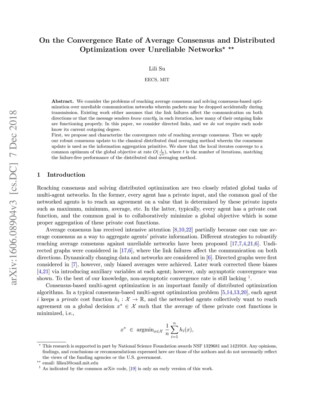 Optimization over Unreliable Networks