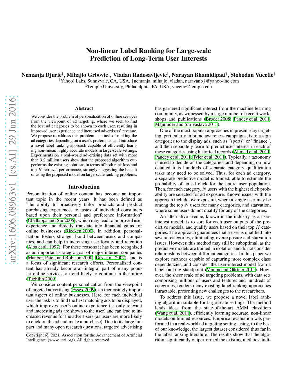 Non-linear Label Ranking for Large-scale Prediction of Long-Term User